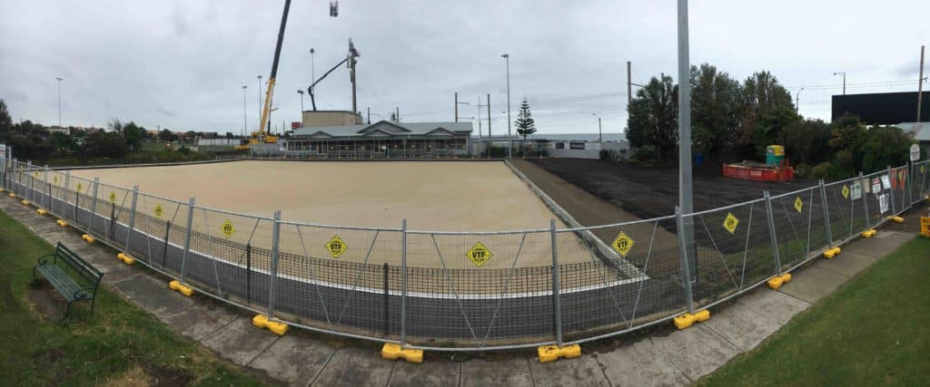 Field Form completed demolition and the complete reconstruction of the Phillip Island Football and Netball Clubs competition courts from December 2018 through to April 2019. The project consisted of demolition of the existing dilapidated court facilities, and reconstruction of a concrete netball court facility complete with acrylic surfacing, fencing, players shelters and lighting. A new base pavement consisting of compacted crushed rock was constructed under the new concrete base, along with retaining walls and drainage upgrades in order to ensure longevity of use for the new courts. Significant challenges were faced on this project with the discovery of contaminated soils and asbestos containing material underneath the old court base. Fortunately, Field Form’s team are experienced and qualified in the removal of asbestos and contaminated soils, and were able to complete these risky works in accordance with all of Work Safe’s requirements.