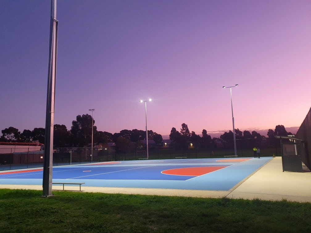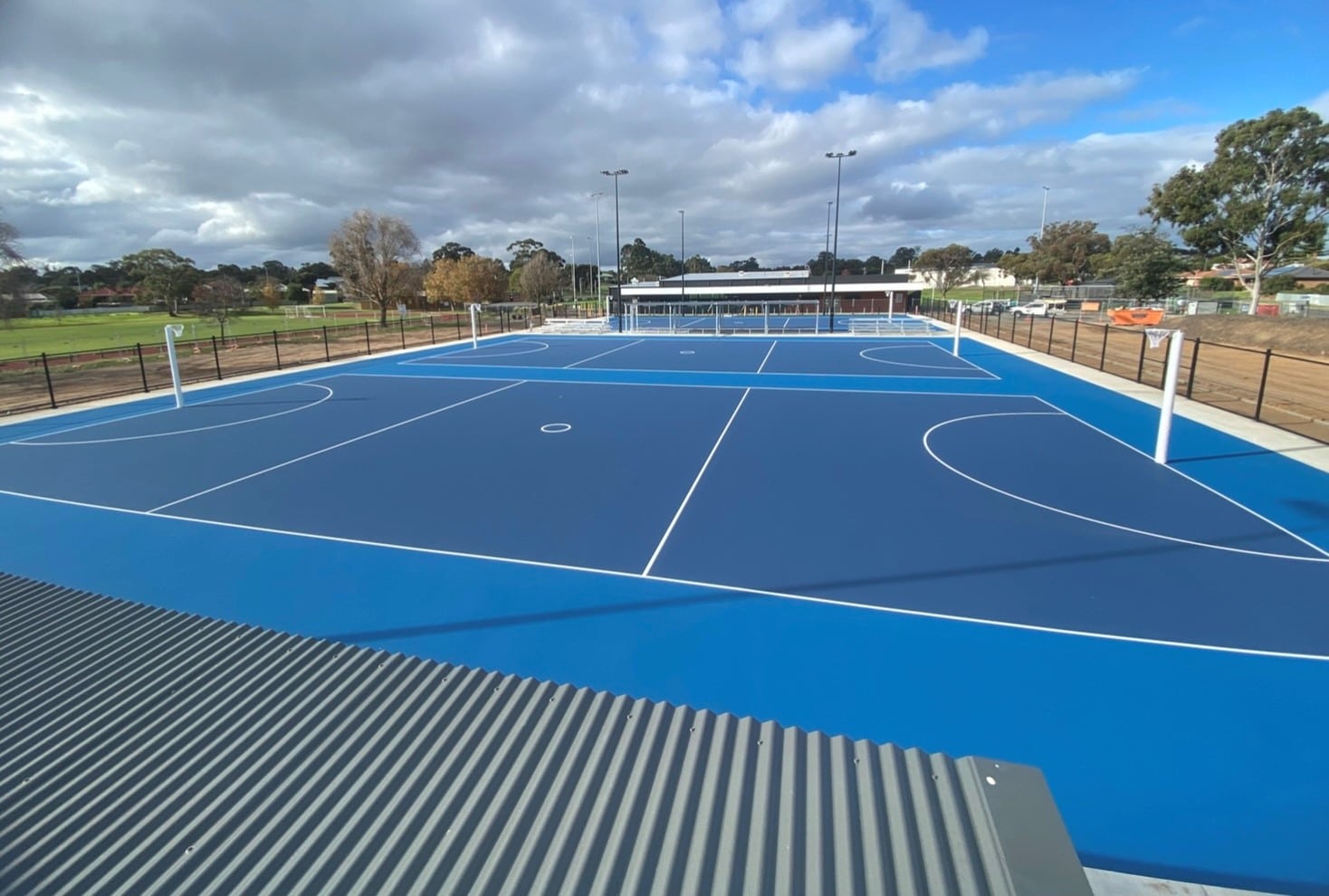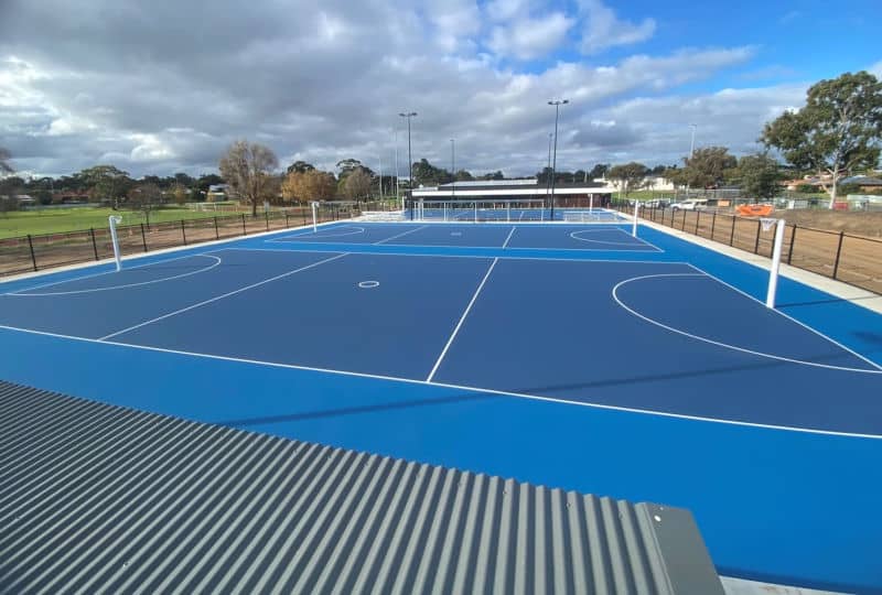 Field Form were engaged as the head contractor to construct three new acrylic surfaced outdoor netball courts on suspended concrete waffle slab with screw piers. This project included earthworks, screw piling, suspended concrete waffle slab construction, lighting, fencing, players shelters, synthetic turf spectator area, drainage, water fountains and contaminated soil removal works.